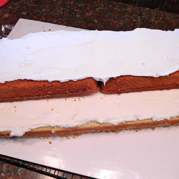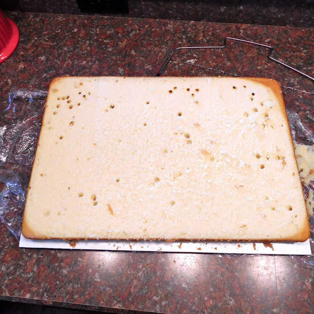 1. Lugar refrigerado y enfriar la torta sobre una plancha de pastel de 13 x 19 pulgadas.