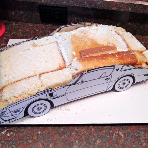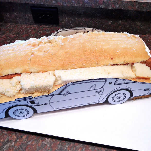 La forma más fácil (en mi opinión) tallar un vehículo pastel para el tamaño y la forma es con un patrón impreso.