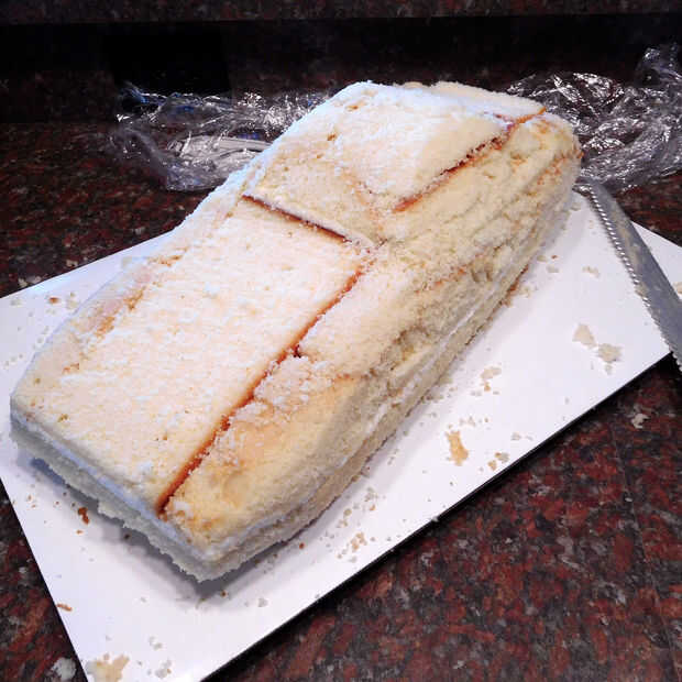 3. Determinar cómo ancho desea el coche/pastel y cortar el extremo más largo.