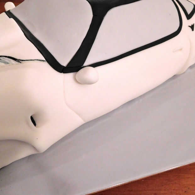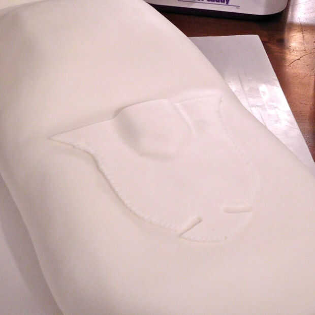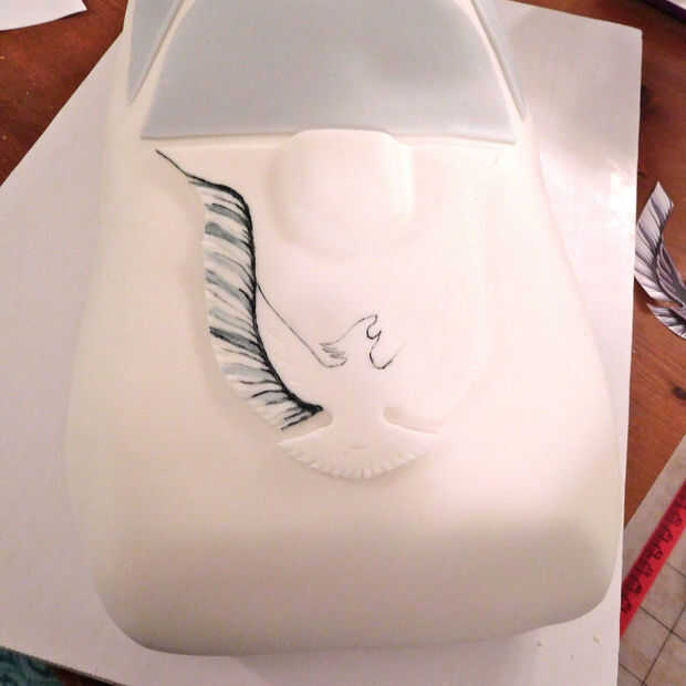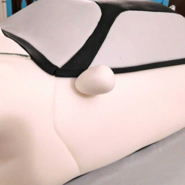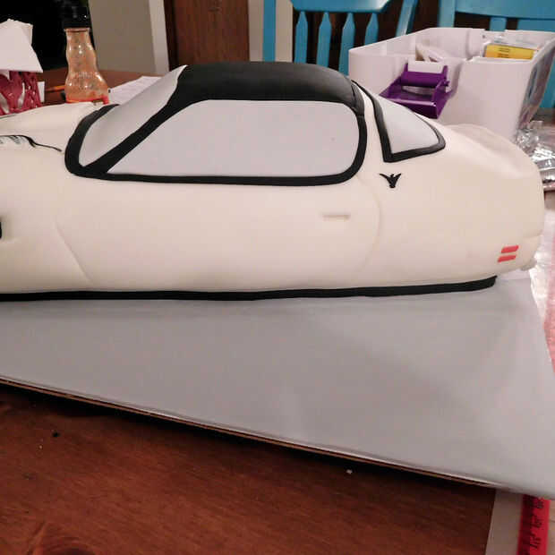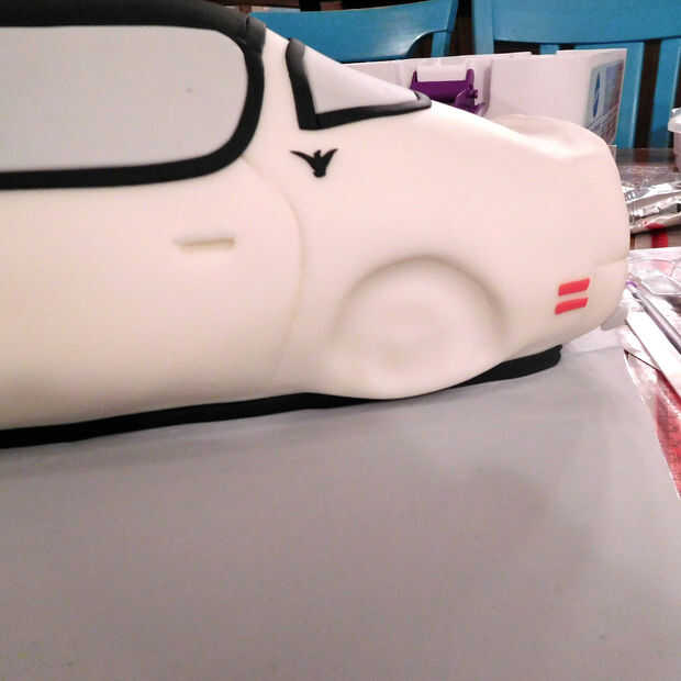 - Cortar un trozo de fondant blanco con el fondo que la forma de la phoenix y la tapa que empareja para arriba con el capó del coche.