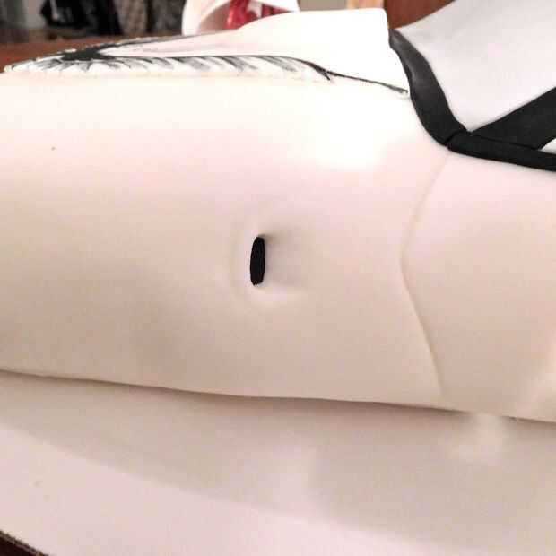 - Usando la marca de final de una clavija de madera (o palillo de la tajada) un guión para los respiraderos laterales.