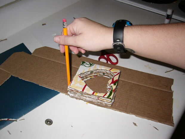 Ahora que la caja interna se ha secado, coloque la pila en un pedazo de cartón y trazar la base. Gire a su lado y márquelo. Fracaso en su espalda y dibujar una línea más. Cuando usted corta hacia fuera, asegúrese de dejar cierta holgura. Cartulina tiende a encogerse cuando te retiras.