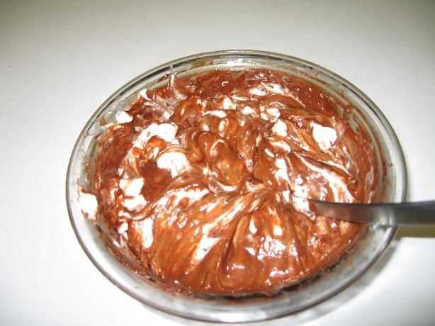 Una vez que has incorporado de la crema batida en el chocolate, conseguido a través del punto de agarrar y golpeado hasta que quede muy lisa, no mezcla más. Desde este punto, sólo doble batida crema en hasta que el mousse es agradable y esponjoso. Acciones plegables muy suaves mantendrá el aire de escape; mezcla vigorosa se desinflará la crema batida y a viento con ganache en lugar de mousse. No overfold pequeñas manchas de blanco están muy bien en este momento. Tubería el mousse en las copas los acabará.