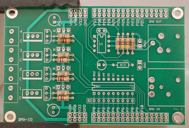 este dispositivo lee una señal DMX-512 y agarra una cantidad variable de valores de datos de canal y envía a 57200 o 19200 baudios a un dispositivo externo, como un 24 alta corriente LED controlador de canal, cuando se solicita un nuevo paquete de da