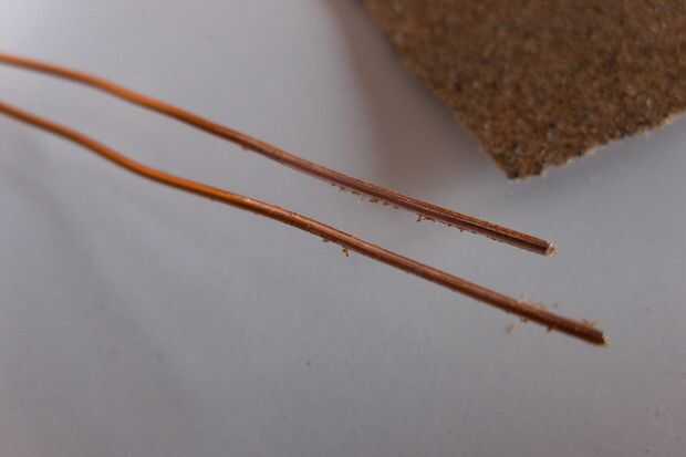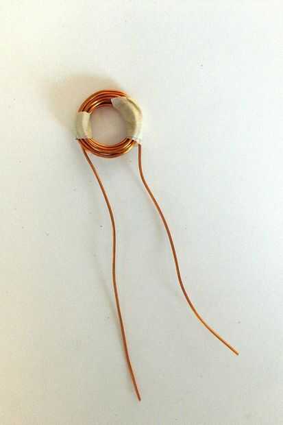 Muy importante paso Para obtener una buena conexión entre el cable y el altavoz, el aislamiento de esmalte tiene que ser eliminado de los dos extremos de la cola de la bobina. Con un trozo de papel de lija o el borde de un cuchillo en forma, suavemente raspar el recubrimiento de las brocas de cola de alambre en la bobina