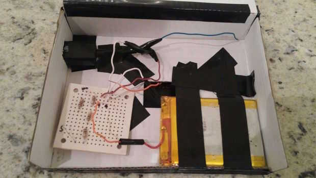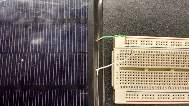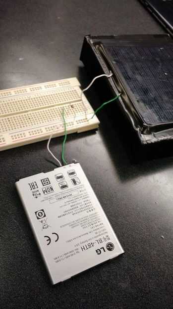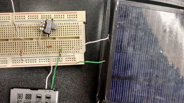 Lo el de primero es cablear el panel solar a la placa de cobre. Teniendo correctamente soldado esto, se puede añadir el diodo Zener, el cual está en polarización inversa con adicional al panel del. Se cablea la pila de litio recargable después del diodo, la cual comparte la misma tierra el panel solar y cuyo polo positivo es el da al diodo. En paralelo a la pila se conecta el arreglo de resistencias con el interruptor. Este arreglo está diseñado como sigue: una resistencia de 1000Ohms en serie con un interruptor mecánico encendido y apagado, en serie con una última resistencia de 470Ohms. La resistencia de 1K se cablea al nodo entre la pila y el diodo, y la de 470 va cableada a la tierra del circuito. Finalmente se cablea al USB hembra para se pueda conectar a cualquier otro dispositivo móvil. Esta entrada USB va cableada directamente a la tierra del circuito en su cable negativo, su cable positivo va al nodo de la resistencia de 1000Ohms y la pila, y los cables de D + y D - van al interruptor. Esto último es para poder abrir y cerrar el circuito, lo cual nos permite evitar se descargue continuamente y podamos mantener el voltaje de la batería