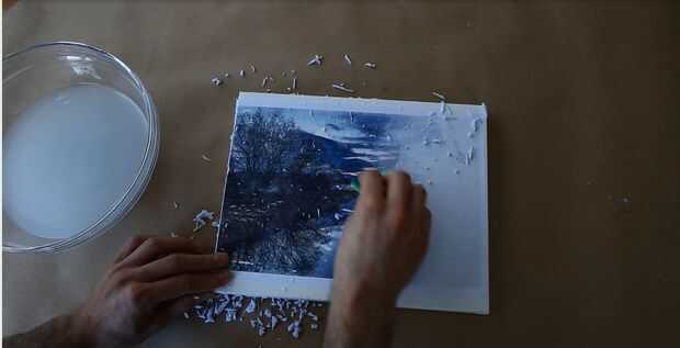 Suavemente con la esponja y el agua, frotar apagado la capa superior del papel, así desentrañar la foto de abajo.
