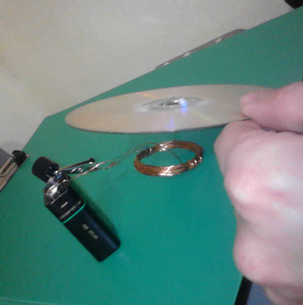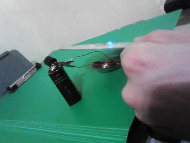 Tomó la bobina del receptor y conseguir que cerca de la bobina del transmisor, led debe emitir luz, medida que se acerca a la bobina.