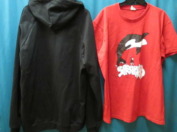 Mi hermano tiene un freekn ya bastante impresionante 'Metal Mulisha' sudadera con capucha. Él también tenía algunas camisetas viejas que sólo eran un poco demasiado paliza usar ya, así que les llevó y les había tajado para arriba y listo! Su capucha