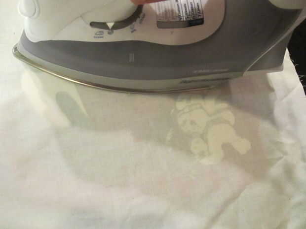 Coloque una pieza delgada de tela de muselina o planchar sobre diseño y hierro según instrucciones, unos 6 segundos por punto.