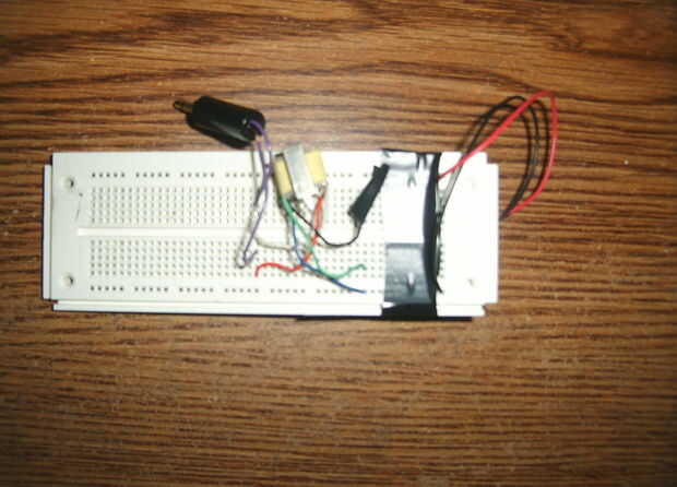 Los cables azul y verdes necesita conectarse a la protoboard y posteriormente se conectarán a la láser. El cable negro medio no conduce a nada, así que es mejor envolver un trozo de cinta aislante alrededor de él, como lo he hecho.