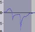 El segundo método que probé fue escanear a través de la pista en busca de grandes picos que parecía fuera de lugar y sacarlos. Para estar seguro que era un clic y no solo un golpe fuerte (eg. tambor) I clic justo a la izquierda de la sección en cuestión y desde allí. Asegúrese de hacer clic, seleccionar un área que cubre el clic y hacer zoom con el botón de zoom en la esquina superior derecha hasta que el pico es suficientemente amplio como para distinguir fácilmente la parte para ser eliminado contra la música. Seleccione esta sección corta y borrar utilizando la tecla Suprimir.