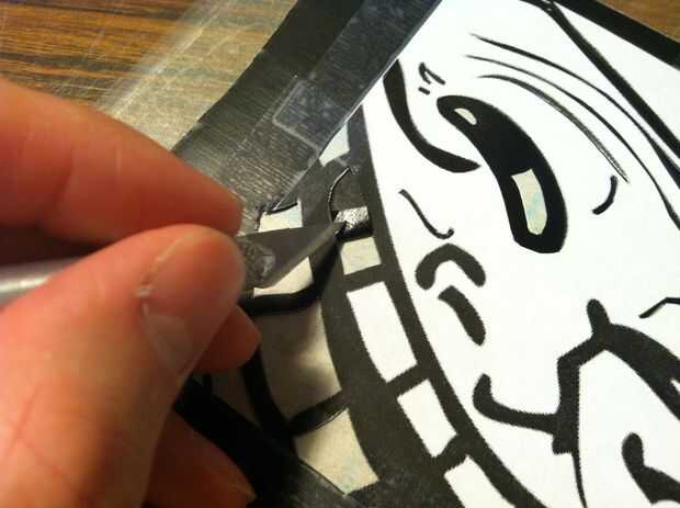 Después ha cortado la última pieza no deseada, corte a lo largo del perímetro de la imagen a todas las piezas negras desde la frontera del papel negro de contacto.