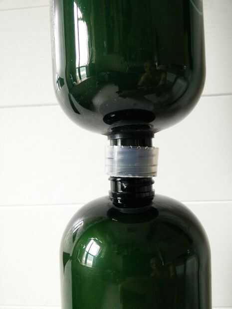 Conectar dos botellas se muestra como la foto. Asegurarse de que hilos participar en ambas botellas. Compruebe si la parte superior de la botella vaciar en pocas horas. Guardar el collar en la próxima ronda. Disfrutar no es un desperdicio =)