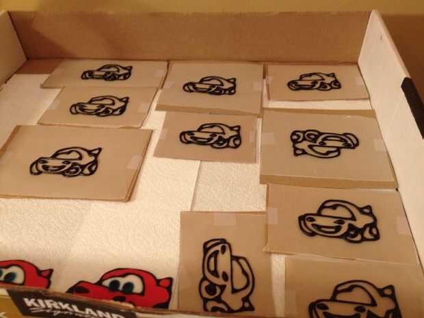 Pensar estratégicamente sobre su diseño. Que desea iniciar con un esquema. Hacer esto y dejarlo seco durante la noche porque es la pieza más importante, es base de su diseño. A pesar de que los neumáticos son de negros, mi imagen, si te dejo el contorno seco, los neumáticos pueden rellenarse más tarde y parecen hinchados. Tiene más sentido. Y hay que recordar, glaseado real se blob juntos a menos que los bordes junto a seco.