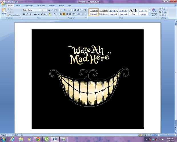 Haga clic en Insertar > imagen y haga clic en la imagen. Puede jugar con el tamaño de la misma. Te recomiendo mantener un pedazo de papel de impresión hasta la camisa para que pueda ver sobre cuán grande tu imagen impresa será en relación a cuán grande es en Microsoft Word.