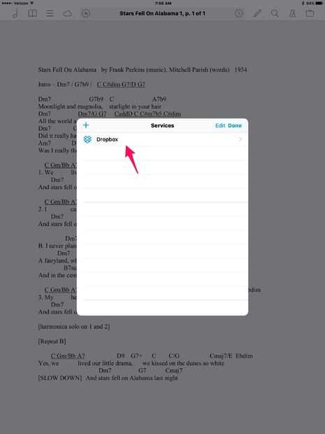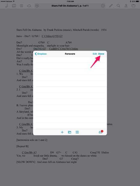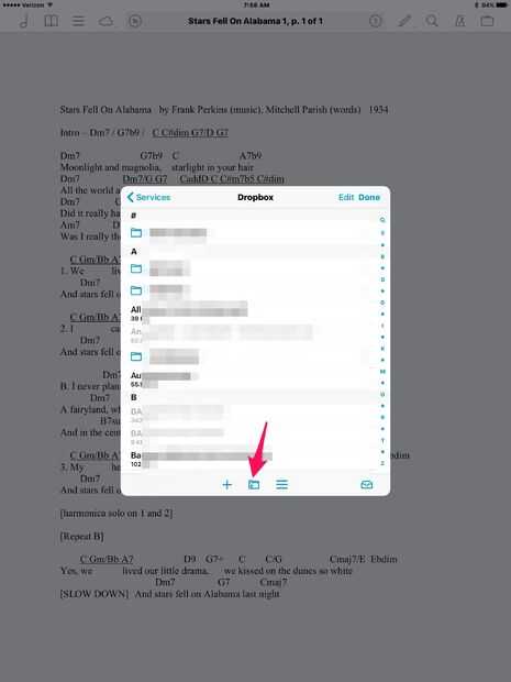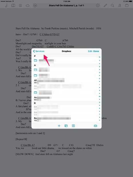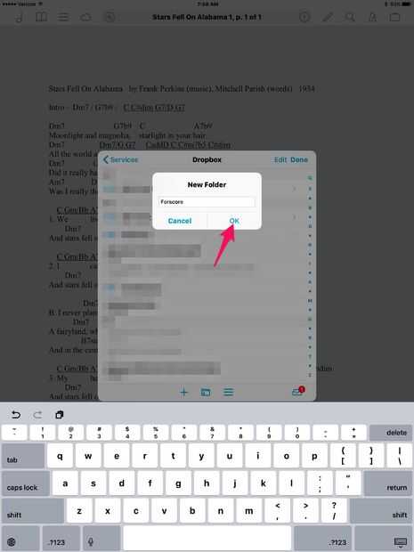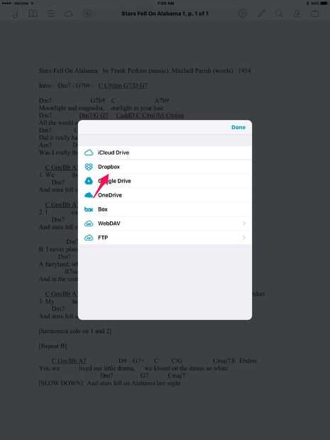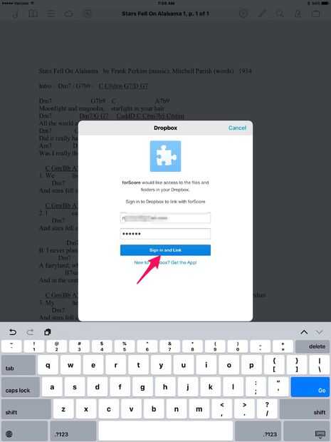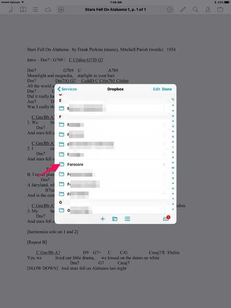 Paso 1: Conectar ForScore en el iPad a DropBox y establecer una carpeta