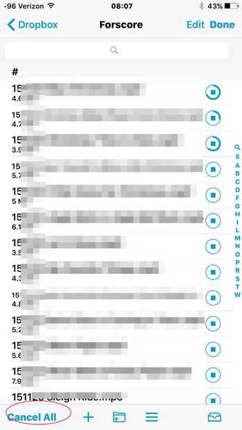 16. usted verá un botón de texto azul que dice cancelar todo en el borrom izquierda, espere que desaparecen. Esto puede tomar un tiempo. Mientras tanto, verá círculos detrás de nombres de archivo al que están siendo descargados. Ser paciente