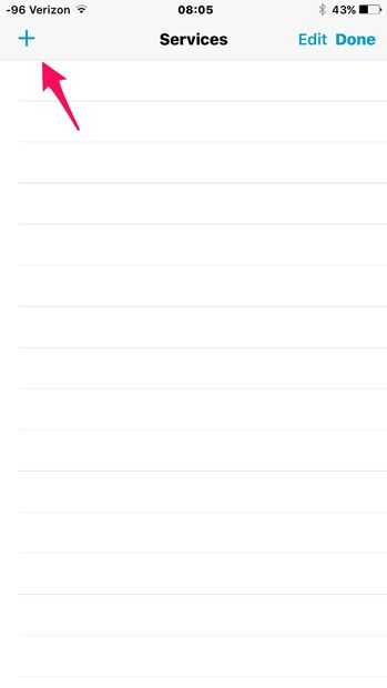 6. hacer clic en el + en la parte superior de la ventana para que aparezca la lista de servicios