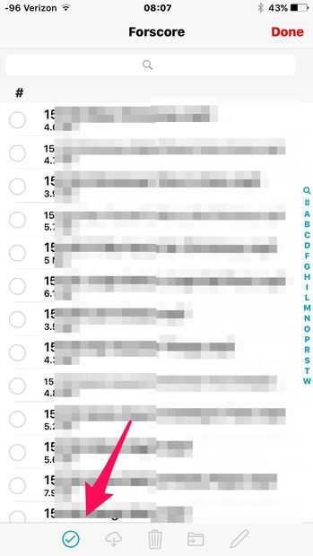 11. Pulse el botón Editar en la parte superior derecha, la lista tendrá burbujas delante de cada elemento, y se verá un nuevo conjunto de iconos en la parte inferior