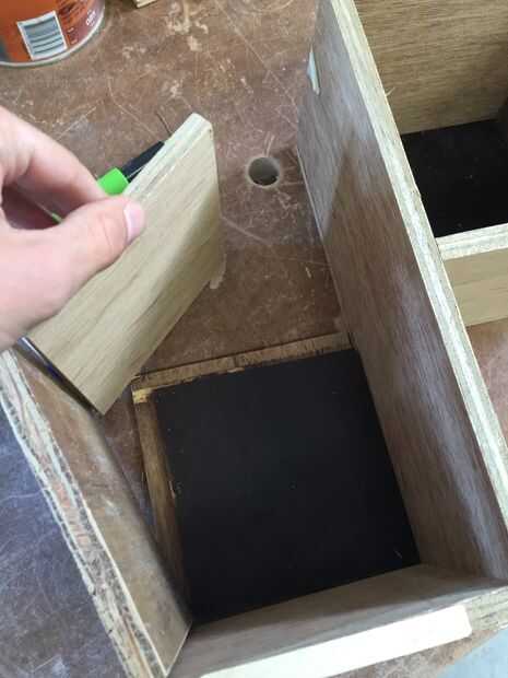 Cortando una fina línea de mismo como el grosor de la cuerda en la parte superior y la baja de los paneles de madera, creamos un lugar para poner la cadena en para no ir a ninguna parte.
