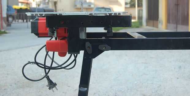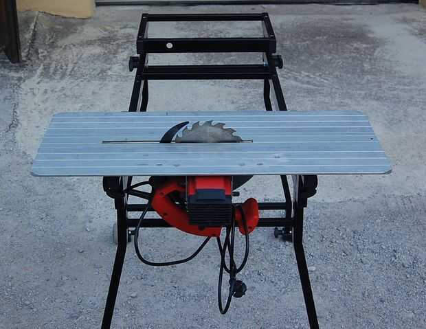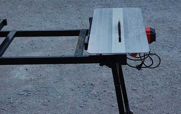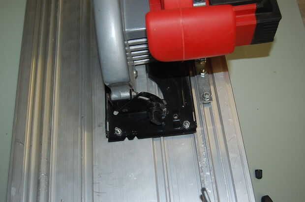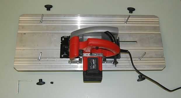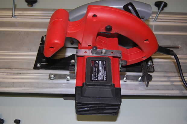 Coloque la sierra en la placa en la posición deseada sobre la mesa, asegúrese de que está en el centro, así que hay bastante lugar para una sierra y el cable eléctrico.
