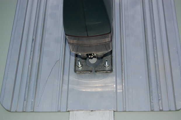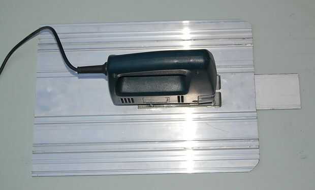 Para el acabado de la mesa de trabajo, fue necesario cortar la placa en la longitud correcta.