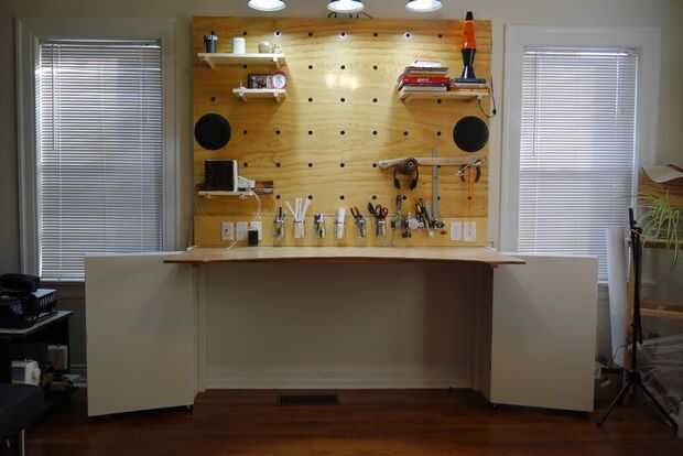 - una superficie de trabajo plegable: haber le visto trabajar para un par de años, yo sabía que le gustaba difundir hacia fuera, así que quería darle un espacio de trabajo grande, pero sin comer permanentemente una tercera de la sala.