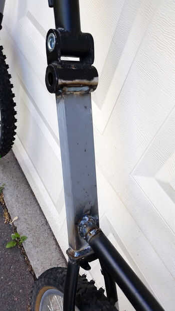 Fue soldada con autógena un pedazo de acero rectangular 10,5 pulgadas de largo en su lugar para extender el triángulo trasero.