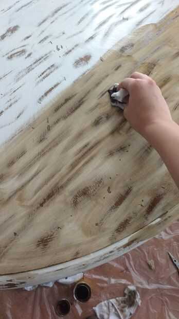 Utiliza manchas Minwax nogal a antiguo avanzar mi mesa blanca cruda y ayudar a mi "granos de madera" demuestran para arriba mejor. Esto es básicamente un mantra "cera sobre cera apagado". Pude cubrir aproximadamente la mitad del tablero en ooey gooey, sucio (he mencionado... ¿GUANTES!? A diferencia de lo que hice jeje) la mancha y que le dio la cantidad justa de tiempo en remojo antes de limpiar y dejar un gran aspecto de madera envejecido!