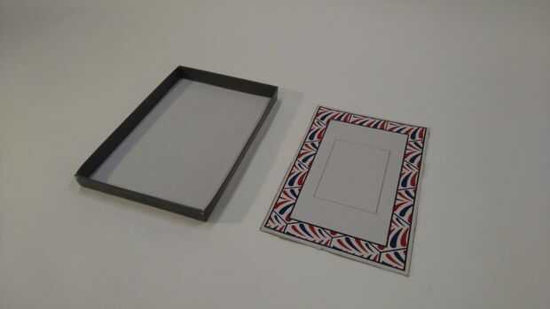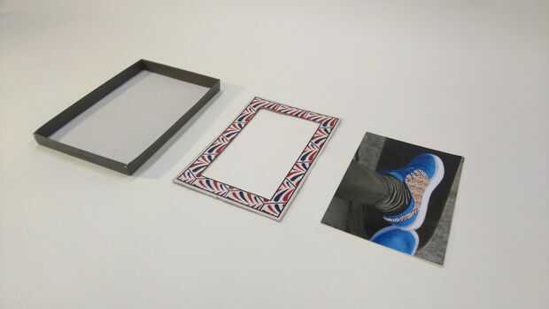 Foto 3; Necesita la tapa de la caja de zapatos y la parte inferior (con el marco de la foto).