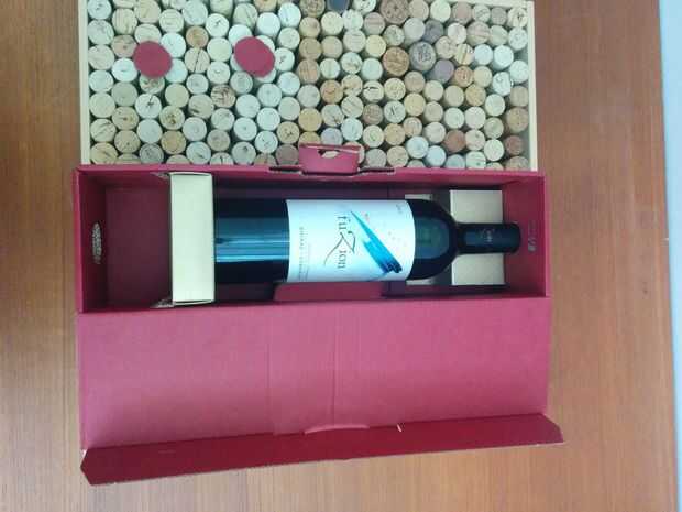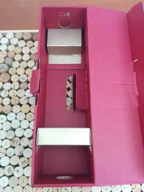 Ahora son capaces de empujar el fondo color oro de la cartulina hacia la parte superior. (Mientras la botella está en la caja)