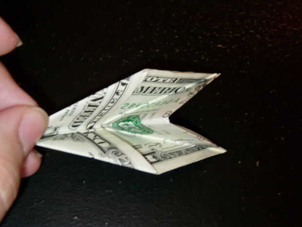 Transformación de dinero volando disco (origami de la cuenta de dólar) (5 / 9 paso)