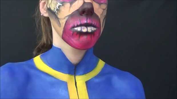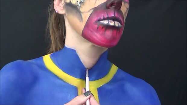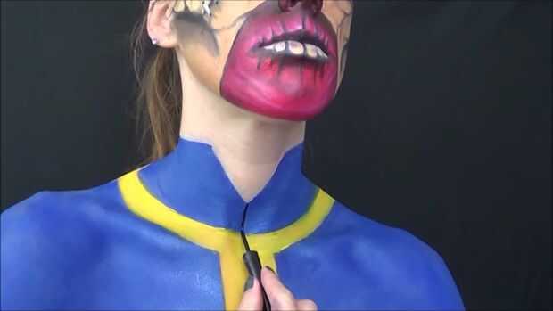 Entonces me puse pintura corporal azul y llena en mi camiseta dejando un lugar claro para el amarillo.