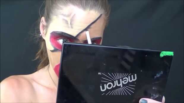 Hacer un look de piel tirado en mi frente solo mantener el negro más oscuro en el centro y tire de ella más ligero a los lados.