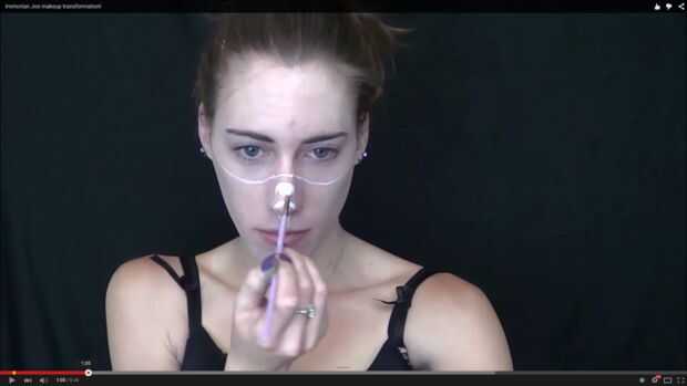 YouTube.com/msmaomaozPaso 1: esquema su diseño del esquema. Usé un lápiz delineador de ojos para hacer esto.Paso 2: blanco y negro agregar blanco para la mayoría de la cara, añadir negro a las pegatinas de ojo y poner un poco en la parte superior de