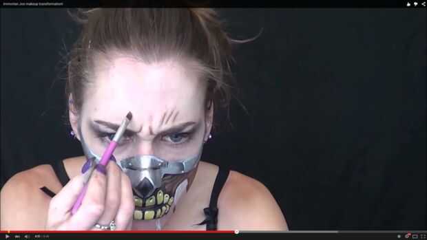 YouTube.com/msmaomaozPaso 1: esquema su diseño del esquema. Usé un lápiz delineador de ojos para hacer esto.Paso 2: blanco y negro agregar blanco para la mayoría de la cara, añadir negro a las pegatinas de ojo y poner un poco en la parte superior de