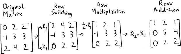 Hay tres operaciones de fila que se pueden realizar con el fin de Escalonar la matriz. Cada una de estas operaciones debe aplicarse a cada elemento de una fila.
