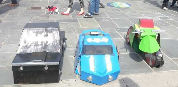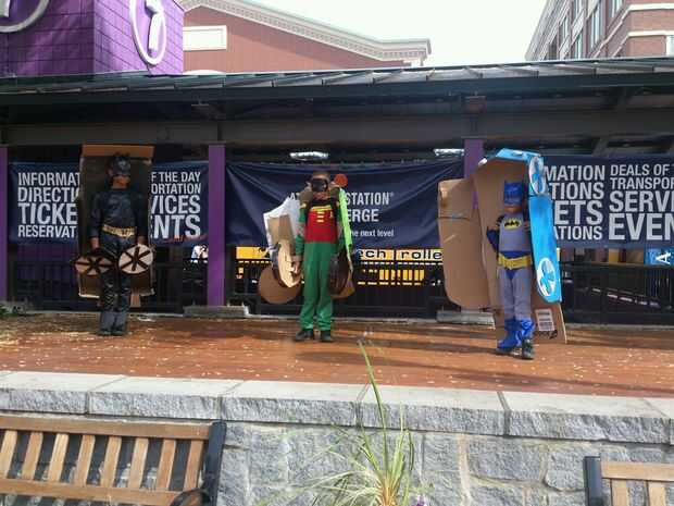 Hola todo el mundo este año 2012 decidimos hacer transformación de Batman y Robin trajes. Desde el 2011 trajes transformador resultaron para ser un gran éxito, que hemos decidido darle otra oportunidad. Bien yo siempre suben con una idea que incluye tríos o proyectos en grupo. Así que tuve un Batman caballero oscuro con un camión de recolección transformación, un carácter de Robin con una transformación de la motocicleta y un Batman azul con un corvette. Los trajes fueron hechos de cajas de cartón. Tengo que decir que la parte más difícil este año estaba tratando de hacer una moto transformadora. Nuevo big shout outs a mi esposo que una vez más optaron por ser parte de mis ideas, pero sin embargo se las arregló para corte y diseño de cada vehículo. Gracias a la local almacena que siempre están dispuestos a donar todas las cajas vacías. Y Home Depot, Loews y Sherwin Williams que siempre tiene uy pintan por $5 o menos. El costo de este proyecto fue de menos de $60,00 que ordené los trajes fuera de eBay. Los muchachos tenían una ovación de pie una vez que la gente se dio cuenta de que los niños pequeños estaban dentro de las cajas. En la foto podrás ver a los muchachos en un escenario y transformó a sus vehículos... Gracias por ver y espero que lo disfruten!!!