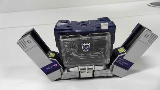 Tirar de las patas de ambos lados de Soundwave y enderezar hacia fuera. Despliegue las patas de la parte inferior de los pies.
