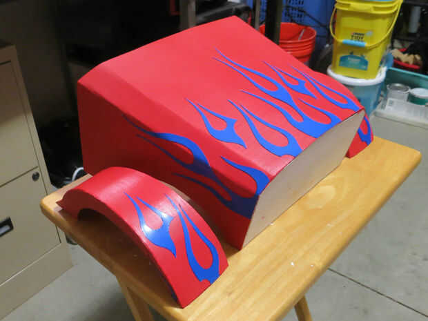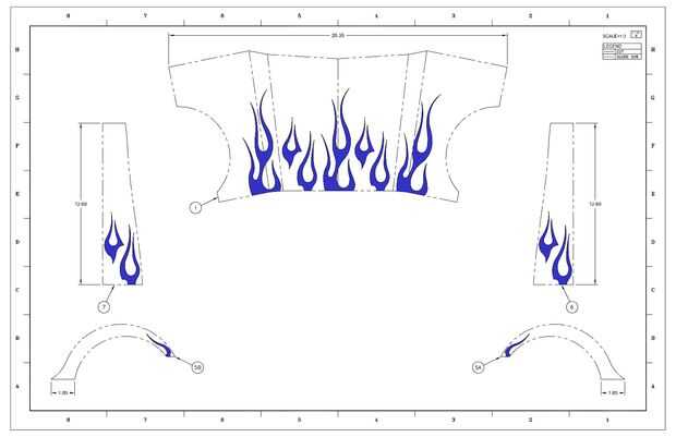La decoración llama fueron diseñada en AutoCAD, coloreada en Photoshop e impreso en papel fotográfico brillante. Estas etiquetas fueron atadas con cinta de doble cara permanente de embarcaciones. Encontré esta cinta trabajada mejor que el pegamento líquido, que tiende a hacer ondas y rizos en el papel.