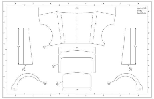 Todas las piezas fueron hechas de pared simple, cartón flauta B excepto los siguientes: