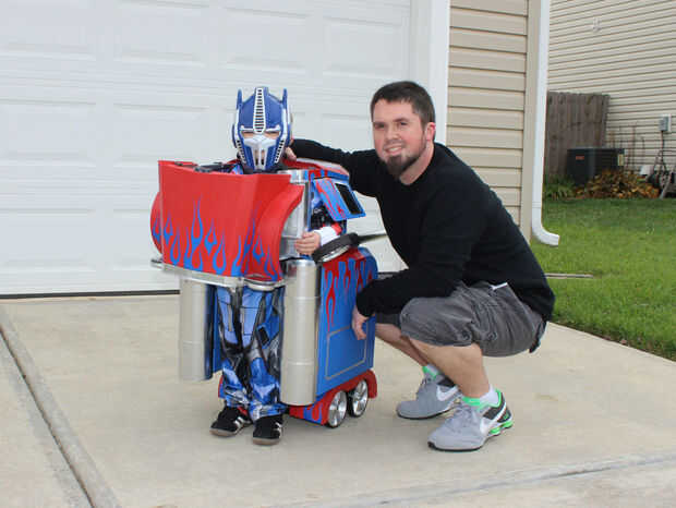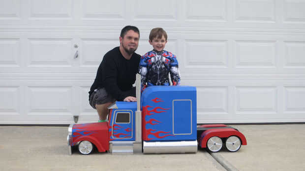 Después de mi hijo en su traje de Optimus Prime comprada y se deslizó en su traje de Optimus Prime hecho en casa, que era tiempo de "Roll Out" para ir truco o tratamiento.