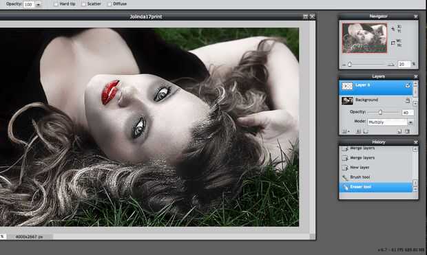 2) usando el control deslizante de opacidad en la paleta capas , reducir la opacidad al 20-30%.