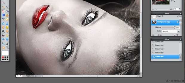 1) crear una Nueva capa, usar la herramienta pincel para pintar de negro en ambos ojos.