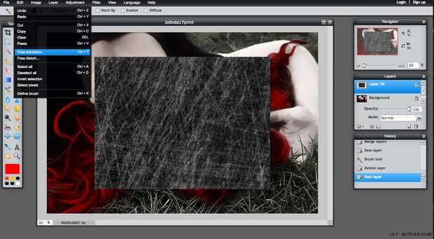 2) en la barra de herramientas Editar , seleccione Transformación libre para estirar la imagen sobre el lienzo.