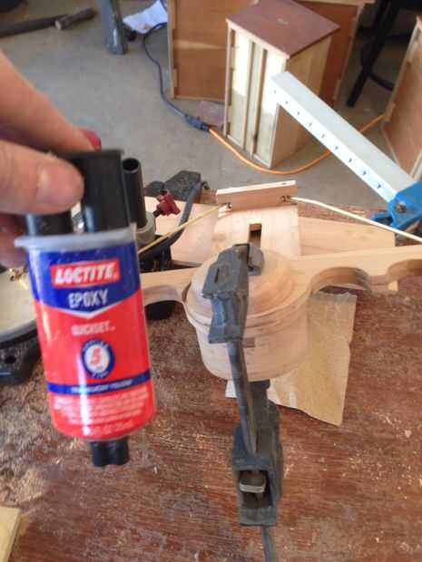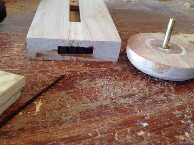 he añadido pequeño varilla cuadrada en la parte trasera de este peso. Usé 2 parte epoxy para sostenerlas en lugar. También instalé los imanes en el frente de los brazos para asegurarse de que permanece cerrado y también en la parte inferior de la botella, para asegurar que permanece abierta. Esta solución funcionó hacia fuera muy bien. Después de todo estaba en su lugar pegué el bloque posterior al cuerpo principal. Esto resultó para ser más de un desafío entonces uno podría pensar. Luego utilicé una varilla de latón de 3/8" para colocar la"bola de 1"a la botella, con los brazos, que fue sellado con epoxy parte 2.