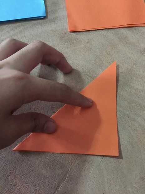 comenzar con una pieza cuadrada de papel de origami(lo que tú color preferido!!!!) Y luego doble el papel por la mitad dos veces y corte el papel en cuatro cuadrados.Paso 1: Iniciar 2 Con uno de los cuatro cuadrados, doblar por la mitad, doblando la