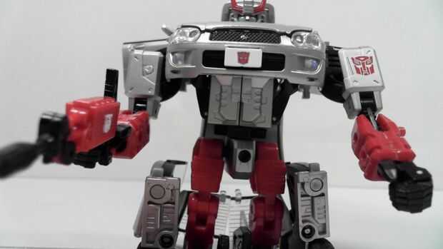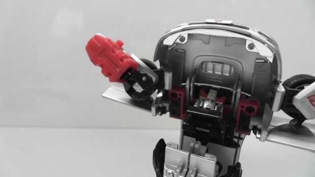 Conecte las piernas al pecho. Rectos los brazos y empuje hacia abajo la campana así que la cabeza puede ir a través de él. Lugar la pistola en la mano derecha y Silverstreak está completa.