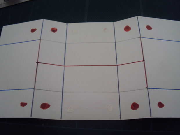 Esto es donde actualmente deben estar en. Pegamento en el reverso, caras con los puntos rojos (Foto 2). Sólo debe cubrir la zona de la plaza que el punto está en (más fácil de visualizar en la vida real).